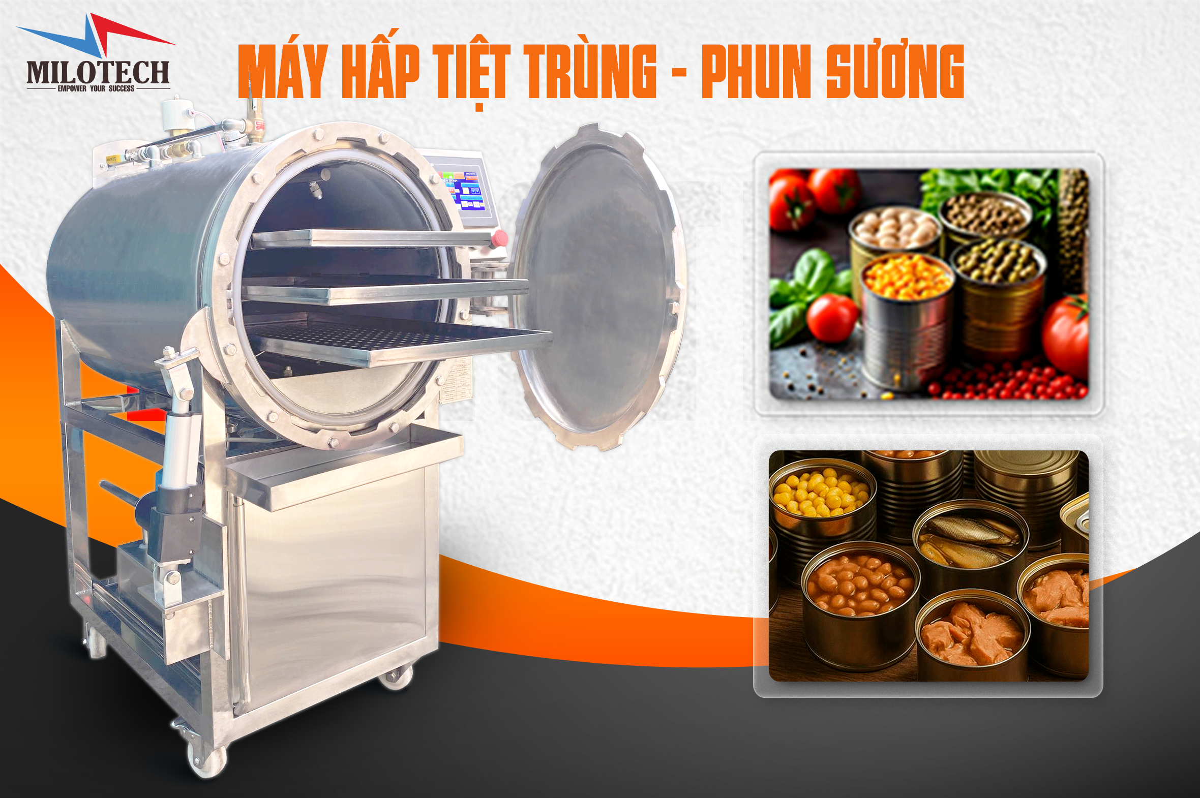 Máy hấp tiệt trùng phun sương là thiết bị hấp trong môi trường kín, kết hợp nhiệt độ – áp suất – phun sương vi hạt để bù ẩm trong suốt chu trình. Giải pháp này giúp thành phẩm đồng đều giữa các mẻ, giữ cảm quan tốt và dễ chuẩn hóa quy trình, phù hợp cho yến chưng, thực phẩm dinh dưỡng và thực phẩm đóng hũ.
