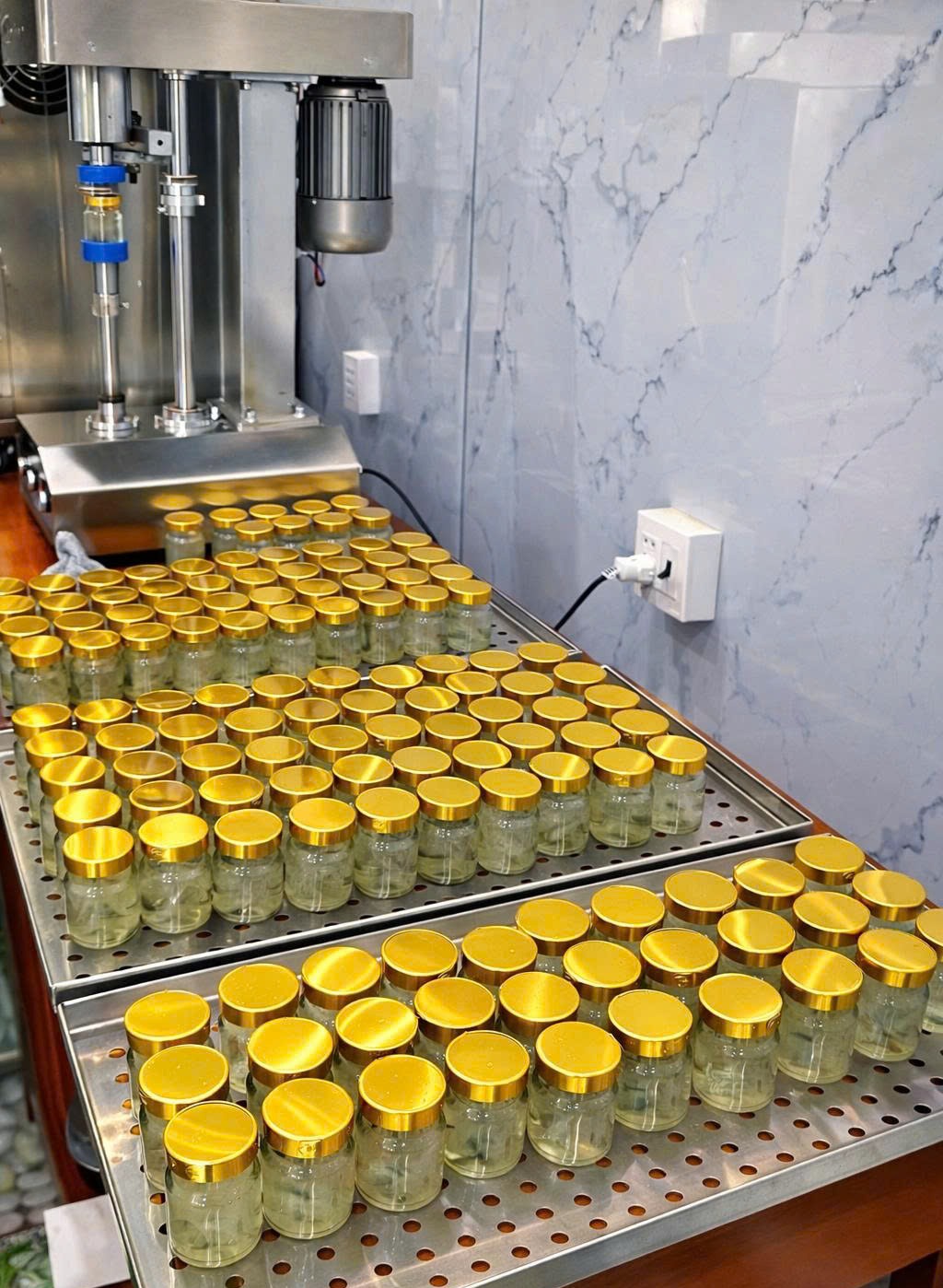 - Kiểm soát độ kín tuyệt đối: Dù là dòng bán tự động, quy trình vẫn đảm bảo mỗi hũ yến sau khi đóng nắp đều đạt độ kín tiêu chuẩn. Sự hỗ trợ từ máy móc giúp loại bỏ hoàn toàn các khe hở siêu vi – “kẻ thù” số 1 gây ra tình trạng oxy hóa hay nhiễm khuẩn, giúp sản phẩm luôn tươi ngon như vừa mới chưng xong.