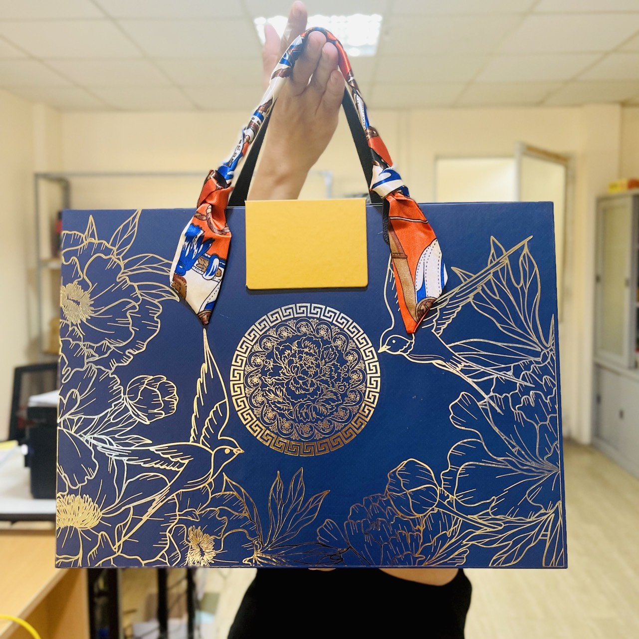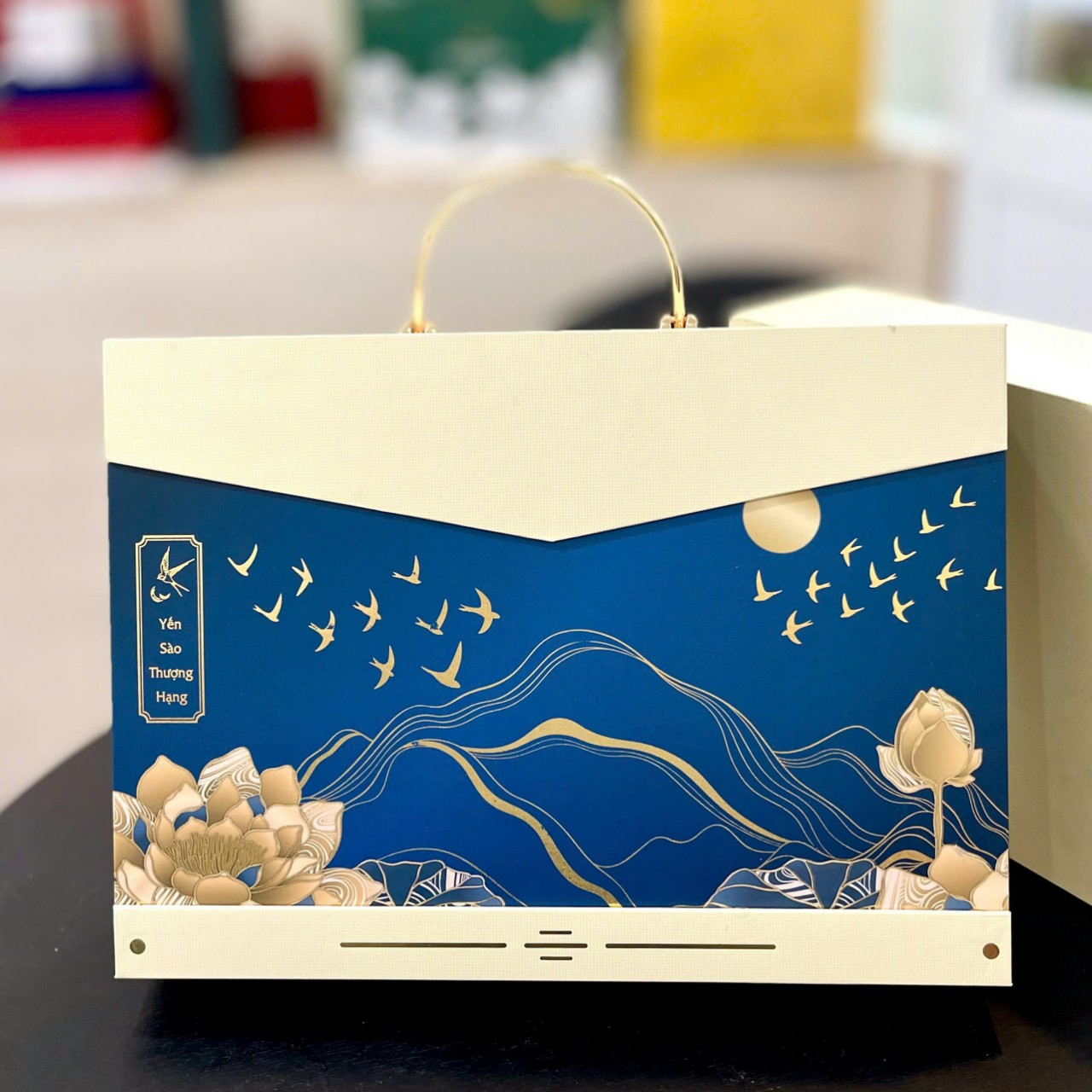 Hộp quà cao cấp đựng yến 1HM/DL 2 đường quai kim loại