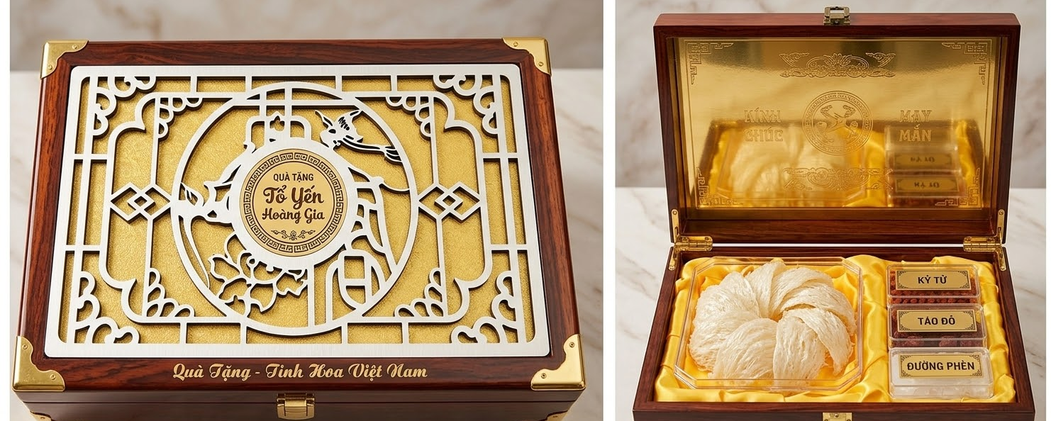 Hộp quà cao cấp đựng yến 1HM/DL 2 đường
