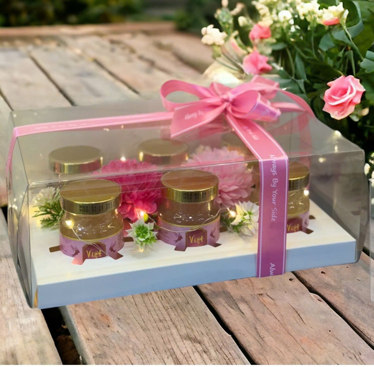 Hộp quà nhựa gấp trong suốt đựng yến hũ – Size nhỏ (4 hũ)