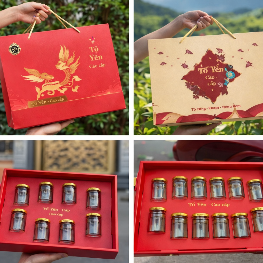 Bộ quà gồm Túi và Khay đựng Yến Hũ mẫu mới (Đỏ/Vàng)