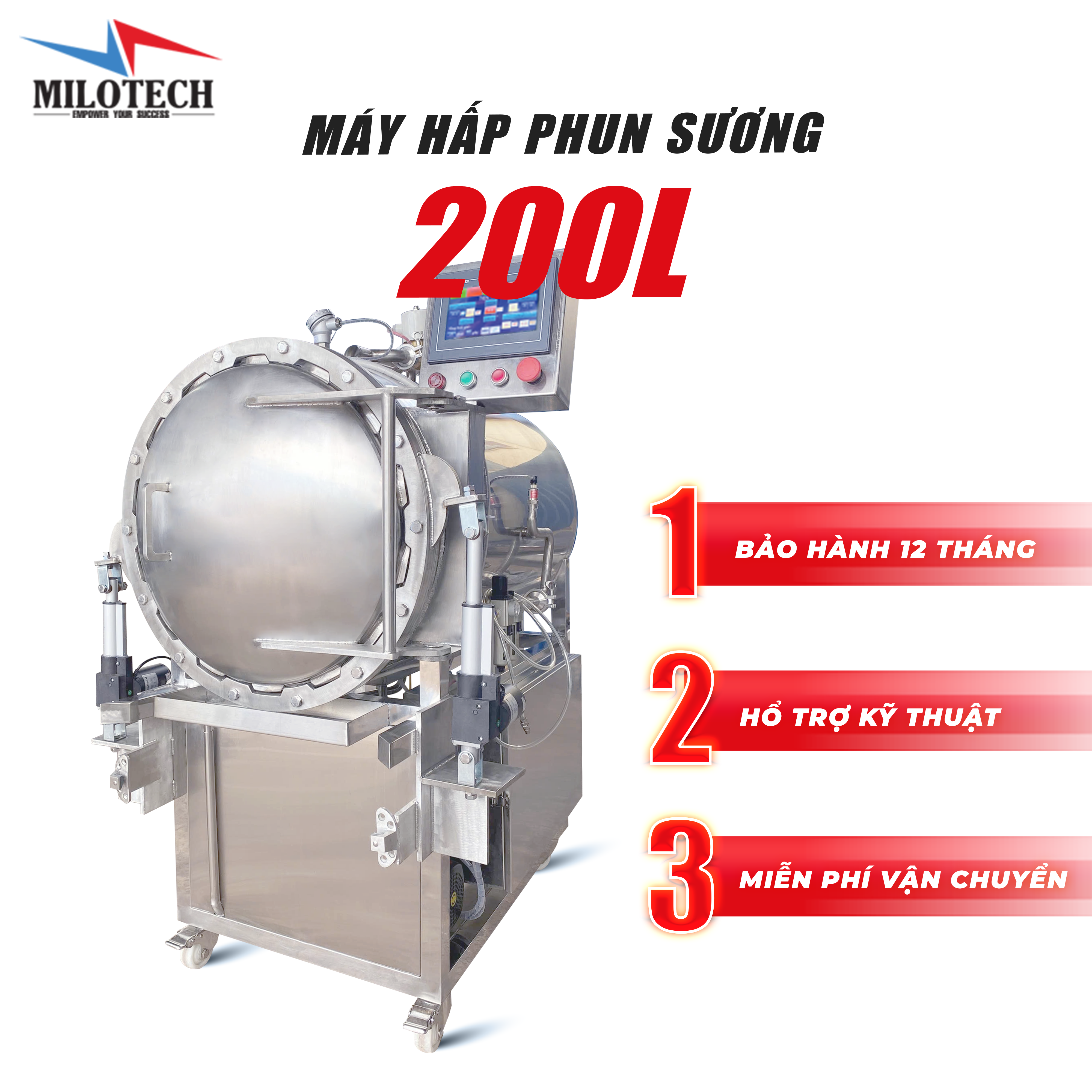 - Máy hấp tiệt trùng phun sương Milotech 100L là dòng máy hấp quy mô nhỏ, phù hợp cho cơ sở sản xuất thực phẩm và nhu cầu thử nghiệm sản phẩm ban đầu.