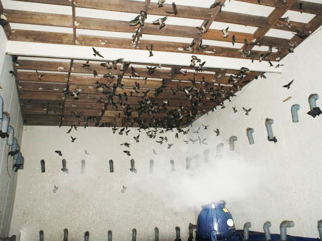 Hệ thống phun sương đối lưu trên mái: Milotech cung cấp giải pháp phun sương làm mát mái nhà và quanh các lỗ thông gió. Việc này giúp giảm nhiệt độ hấp thụ trực tiếp vào kết cấu bê tông, ngăn chặn hơi nóng “hầm” vào bên trong các tầng chim.