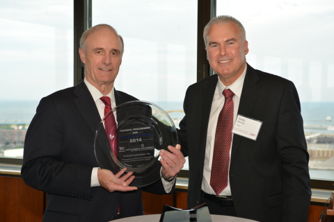 Keith Nosbusch, Chủ tịch và Giám đốc điều hành, Rockwell Automation, nhận giải nhà cung cấp tốt nhất bắc Mỹ năm 2014 cho mua sắm kỹ thuật - bảo trì, sửa chữa và hoạt động (MRO) của Andy Murray, người đứng đầu của mua sắm kỹ thuật, Nestle. (Ảnh: Wire Kinh Doanh)